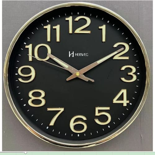 Relógio Parede Herweg Silencioso Ponteiros Luminosos 4609 Preto - Preto Relógio Parede Herweg Silencioso Ponteiros Luminosos 4609 Preto - Preto - Relógio Parede Silencioso Relógio Parede Silencioso Ponteiros e Números com adesivos Luminosos 30cm Usa Pilha Tipo AA Detalhe do Mostrador em Alto Relevo Nas cores: Preto e Branco