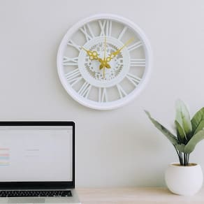 Relogio Parede Industrial Rustico Estilo Madeira Design Vintage Romanos 30cm Decorativo Branco