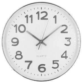 Este relógio é mais do que apenas uma forma de marcar o tempo. Ele é uma declaração de estilo e Elegância. Com um elegante acabamento prata e um fundo branco neutro, ele se integra facilmente a qualquer esquema de decoração, adicionando um toque de luxo discreto. Sua operação silenciosa, graças ao quartzo de alta qualidade, garante que você não será perturbado pelo típico tic-tac irritante de outros relógios.