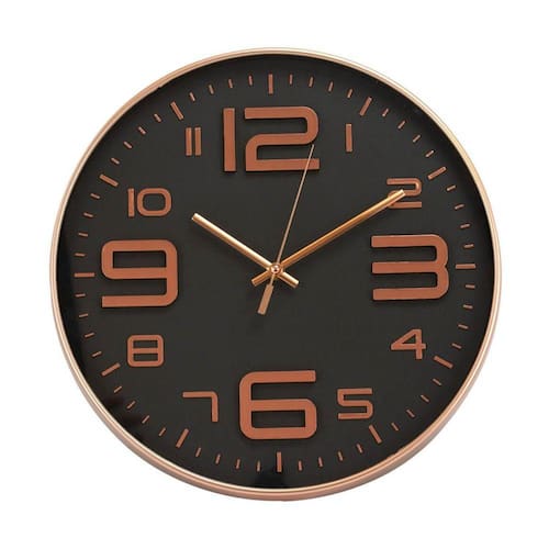 Relógio Parede Redondo Rosê Preto 34x34cmRelógio Parede Redondo Rosê Preto 34x34cmRelógio de parede redonda com borda rosê e fundo preto com 34 cm de diâmetroPonteiros para horas, minutos e segundos.Numeração arábica.Detalhes:Material: plástico;Funcionamento: 1 pilha AA;Peso 0,730 gramas;Altura 34cm;Largura 34cm;Comprimento 4,50cm.