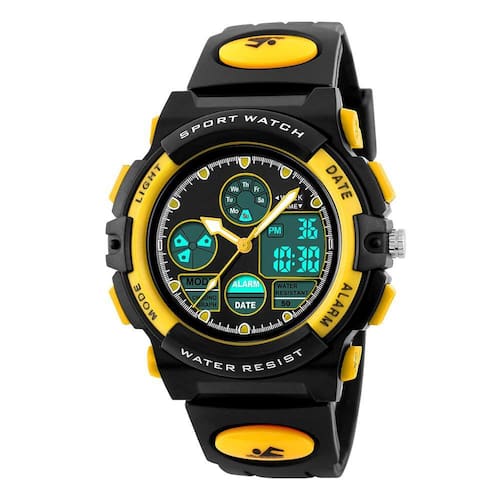 ?Relógio digital multifuncional para crianças?Resistente a choques, cronógrafo, exibição dupla, luminoso/alarme/calendário/50 m/164 pés à prova d'água.