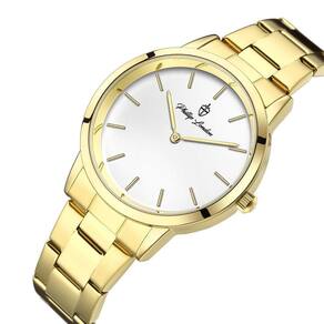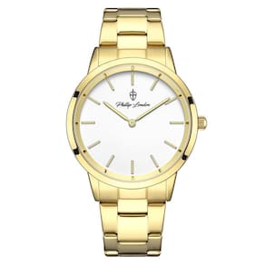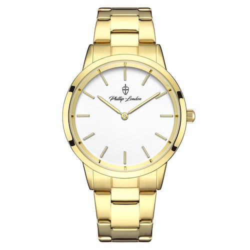 Relógio Phillip London Masculino Ref: Pl80377145m Br N Casual Dourado DESCRIÇÃO DO PRODUTO:Caixa de Metal Pulseira de Aço Vidro de Cristal Mineral Fundo Rosqueado Resistente à Água 5 Atm Diâmetro / Largura da Caixa: 40.00 MM Funções: Analógico Design Inglês Estilo: Esporte Fino Alimentação do Maquinário: Bateria Linha: Philiph London Beckham Mostrador Prateado com detalhes em DouradoGarantia de 1 ano Marca: Phillip London