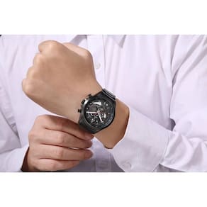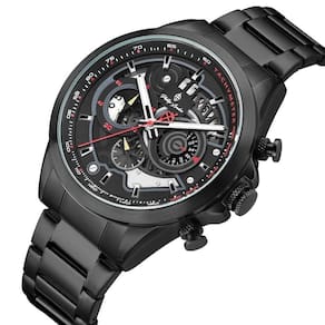 Relógio Phillip London Masculino Ref: Pl80388613m Pr N Cronógrafo Black DESCRIÇÃO DO PRODUTO: Caixa de Metal Pulseira de Aço Vidro de Cristal Mineral Fundo Rosqueado Resistente à Água 5 Atm Diâmetro / Largura da Caixa: 45.00 MM Funções: Analógico, Cronógrafo, Calendário Design Inglês Estilo: Esporte Fino Mostrador Preto com detalhes em vermelho Alimentação do Maquinário: Bateria de 1 ano Marca: Não Informado Ean: 7897033052846