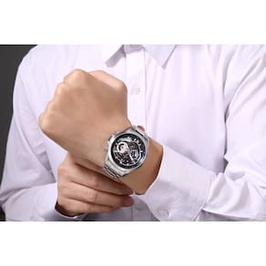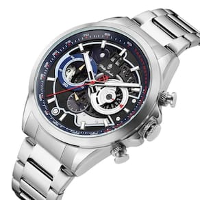 Relógio Phillip London Masculino Ref: Pl80389623m Az N Cronógrafo Prateado DESCRIÇÃO DO PRODUTO: Caixa de Metal Pulseira de Aço Vidro de Cristal Mineral Fundo Rosqueado Resistente à Água 5 Atm Diâmetro / Largura da Caixa: 45.00 MM Funções: Analógico, Cronógrafo, Calendário Design Inglês Estilo: Esporte Fino Mostrador Azul com detalhes em vermelho Alimentação do Maquinário: Bateria Garantia de 1 ano Marca: Phillip London Ean: 7897033052853