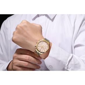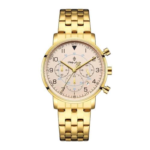 Relógio Phillip London Masculino Ref: Pl80394645m Ch N Cronógrafo Dourado DESCRIÇÃO DO PRODUTO: Caixa de Metal Pulseira de Aço Vidro de Cristal Mineral Fundo Rosqueado Resistente à Água 5 Atm Diâmetro / Largura da Caixa: 40.00 MM Funções: Analógico, Cronógrafo, Calendário Design Inglês Estilo: Esporte Fino Linha: Phillip London Churchill Mostrador Champanhe com Números Alimentação do Maquinário: Bateria Garantia de 1 ano Marca: Phillip London