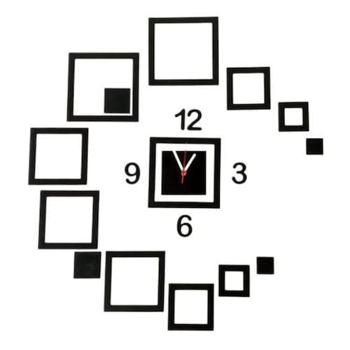 Relógio Preto Acrílico Quadrados Sala Quarto Escritório.