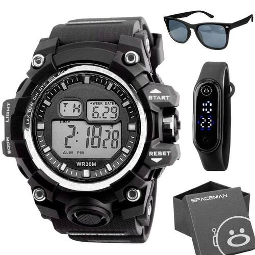 Kit Acessórios Estilosos Orizom Spaceman - Relógio Digital + Óculos de Sol + Caixa Premium