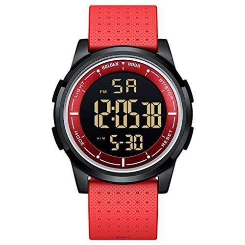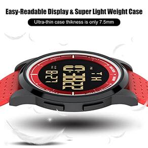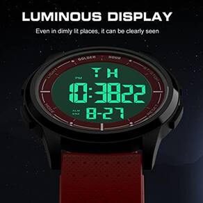 Descrição do produto Nosso novo design, round case encontra a próxima geração de esportes de moda, o que faz nosso relógio com estilo de moda casual para o seu uso diário. Artesanato de correia de borracha lisa, não arranhar seu pulso ou pano, vai muito bem com qualquer roupa e qualquer ocasião. Você pode ajustar o comprimento da pulseira mais longa para 9,8 polegadas de acordo com sua própria escala também. Além disso, escolher nossos relógios não é apenas para um relógio, o que significa uma melhor qualidade e depois dos serviços também. Características do produto **MOVEMENT: Design minimalista casual de moda com relógios esportivos digitais black case . Este relógio de pulso do cavalheiro da moda será muito adequado para qualquer ocasião.. **Resistente à água a 50M: adequado para nadar em águas rasas e tomar banho frio, mas mantenha-se afastado da água quente e do vapor, não adequado por longo tempo atividades subaquáticas, como mergulho. **A cara do relógio é muito clara, agradável e fácil de ler. lente acrílica/vidro mineral Hardlex. **Este relógio é encantador para todas as ocasiões, como turismo, mesa, feriado ou festa diária. Forma do caso do parâmetro: Caixa Redonda Material: resina/aço de liga: 39g / 1.4 OZ - 57g / 2.0OZ Espessura da caixa: 8mm /0,31 em caso de diâmetro: 43mm/1.69 em largura de banda:22mm/0,86em comprimento da banda:250mm / 9.84em Nossos serviços --Com 15 dias de recarga, 30 dias de política de substituição e 1 ano após o serviço de vendas. --Se você tiver algum outro problema, por favor, sinta-se livre para entrar em contato conosco, responderemos imediatamente com sua satisfação. CUIDADOS RECOMENDADOS*** 1: Limpar por um pano macio em bases regulares é altamente recomendado. 2: O contato constante com a água pode reduzir a durabilidade do relógio. 3: Por favor, NÃO pressione nenhum botão debaixo d'água e AVIOD o uso em temperatura extrema quente ou fria. Pacote inclui: 1* Relógio digital 1* Cartão de garantia 1* Caixa de presente 1*Manual