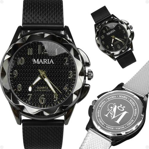 Relogio De Pulso Feminino Silicone Elegância Premium Preto Social Casual Relógio Feminino Orizom Maria Analógico, à Prova D'Água, Mostrador Preto e Pulseira de Silicone