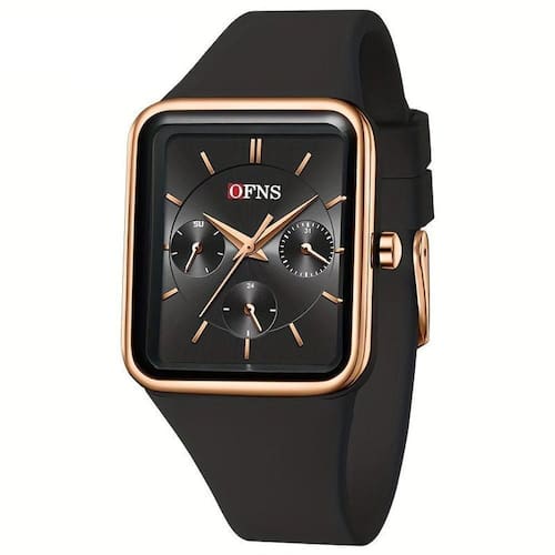 Relógio Quadrado De Quartzo Feminino Da Ofns, à Prova D'água Rosa Preto