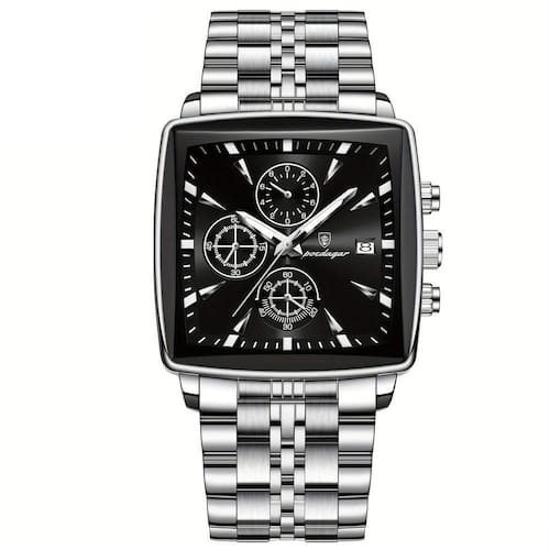 Relógio Quadrado Em Aço Inoxidável Para Homens Com Cronógrafo À Prova Da Água Prata