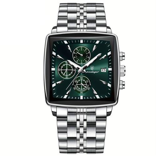 Especificações: [Faixa etária aplicável] Este relógio é ideal para homens que desejam um toque de elegância em seu dia a dia.[Material da correia] Feito de aço inoxidável, garantindo durabilidade e um brilho que se mantém impecável ao longo do tempo.[Material do estojo de relógios] Possui caixa feita de liga, proporcionando resistência sem abrir mão do design sofisticado.[Estilo e Movimento] Com um design elegante e o confiável movimento de quartzo, este relógio combina estilo com precisão.[Fonte de energia] Este relógio é alimentado por uma bateria tipo botão, assegurando funcionamento contínuo e de baixa manutenção.