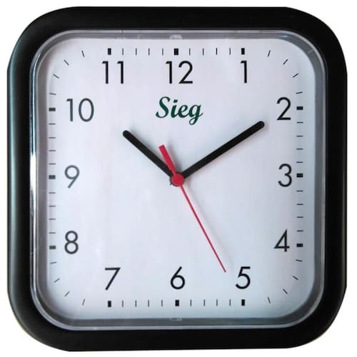 Especificações técnicas: - Título: Relógio Quadrado Preto Fundo Liso 25Cm - Marca: Sieg - Material: Plástico - Aro: Preto em plástico PP - Lente: Poliestireno Cristal - Tamanho: 25x25x2 cm - Alimentação: Pilhas AA