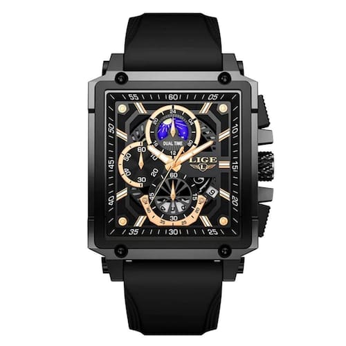 Redefine o conceito de elegância desportiva com seu design contemporâneo e funcionalidade superior. Com um mostrador quadrado robusto e uma pulseira em silicone confortável, este relógio combina sofisticação com a durabilidade necessária para o dia a dia. Sua resistência à água de 3ATM permite que você enfrente chuvas e atividades aquáticas sem preocupações. Este relógio não é apenas um acessório, é uma declaração de estilo e eficiência, ideal para aqueles que levam a vida de forma dinâmica.