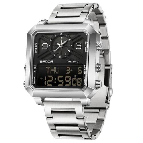 Impressione com este relógio de pulso esportivo que combina a elegância de um mostrador analógico com a praticidade de um display digital. Projetado para o homem moderno que valoriza estilo e funcionalidade, este acessório é a peça chave para qualquer guarda-roupa, adicionando um toque de sofisticação às suas aventuras diárias.