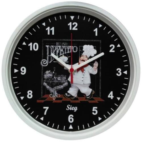 Relógio Redondo Branco 28cm Cozinheiro - 2805-00 - Sieg Relogio Redondo 28cm Branco Fundo Cozin.