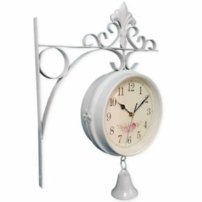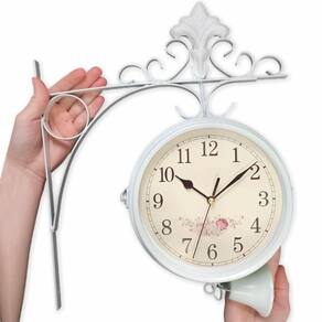 Relógio Retrô Com Sino Estação Trem Dupla Face Floral Branco -
