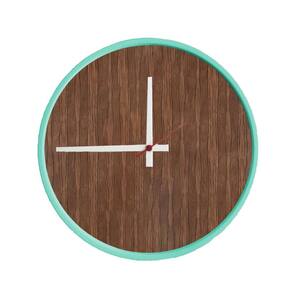 Relógio Round Verde Mostrador Pau Ferro Ponteiro Branco 50 cm Moldura em Alumínio que proporciona leveza ao produto, e permite acabamento em pintura epóxi-pó não enferruja .