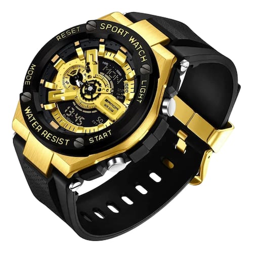 [Resistente a Choques]: Construído para suportar os impactos da vida ativa, este relógio esportivo é ideal para aventureiros e praticantes de esportes. Sua estrutura robusta protege os mecanismos internos contra quedas e solavancos, proporcionando tranquilidade em suas atividades.
