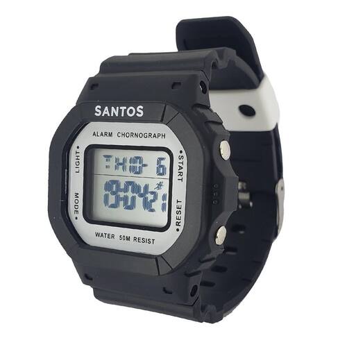 O Relógio é um dos acessórios mais presentes em todas as fases da nossa vida, mesmo com inúmeros dispositivos modernos que mostram as horas, o clássico relógio para pulso não perdeu seu atrativo e é uma ótima opção para complementar o visual com charme e sofisticação. O Relógio Santos FC Oficial Digital Esportivo SAN-DIGI1-2 é o acessório ideal para o torcedor do Peixe, perfeito para fazer atividades esportivas, academia, praia, piscina e qualquer outra ocasião. Especificações Produto: Relógio de pulso Marca: Santos Modelo: SAN-DIGI1-2 Mecanismo: Digital Máquina: Japonesa Citizen Cor da pulseira: Preta Cor da caixa: Preta Tamanho da caixa: 45 mm Funções: Cronômetro, Alarme, Timer, Cronômetro Regressivo, 2 Horários, Luz Led, Hora 24hs Resistente a água: Sim Nível de resistência a água: 50 m : 1 ano Aviso: Imagem meramente ilustrativa. Pode haver alteração da cor, conforme o seu monitor. Marca: Não Informado