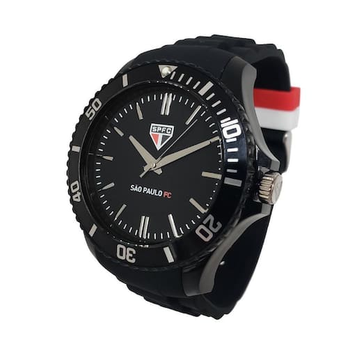 Relógio são paulo fc oficial masculino preto -004-2 relógio são paulo futebol clube - masculino analógico - pulseira de silicone. Produto oficial. Máquina japonesa - citizen este relógio é ideal para você torcedor do tricolor que procura um produto de qualidade para fazer suas atividades esportivas, academia, praia, piscina e qualquer outra ocasião. Ele possui caixa tamaho 48mm, oque é um tamanho excelente para todas as idades. A prova d'água 50m. Garantia de 01 ano. Produto licenciado são paulo futebol clube Marca: São Paulo Fc Oficial