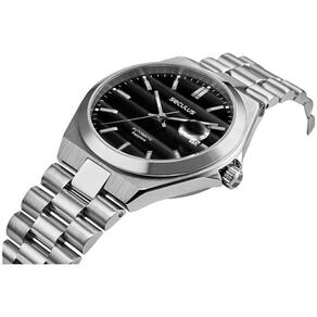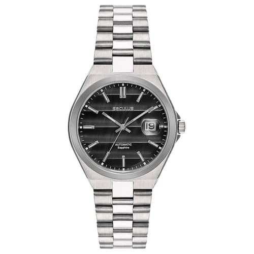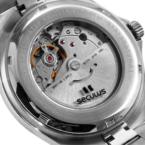 Relógio seculus automático 77313g0svna1 prata e preto Relógio automático com 21 joias e reserva de carga de 42h, construido todo em aço inoxidável, traz elegância e funcionalidade em um só acessório. Equipado com função calendário com luneta, oferece praticidade para o dia a dia. O fundo em vidro permite uma visualização do movimento interno, destacando a engenharia de precisão. O mostrador preto com efeito adiciona um toque contemporâneo ao design, complementado por uma caixa mediana de 40mm de diâmetro. A pulseira sólida com fecho borboleta garante conforto e um ajuste perfeito para todos os tamanhos de pulso. Este relógio é uma escolha indispensável para quem valoriza estilo e performance em um único acessório. Especificações técnicas Mecanismo: automático movimento miyota cal. 8215 - 21 joias reserva de carga de 42h Gênero: masculino Visor: preto com efeito Vidro: safira Funções: calendário com lupa Prova d'água: 100m Características: com caixa e pulseira em aço inoxidável, fecho borboleta e case back transparente. Diâmetro da caixa: 40 mm : 2 anos pela fabricante seculus Marca: Não Informado Ean: 7909669201366