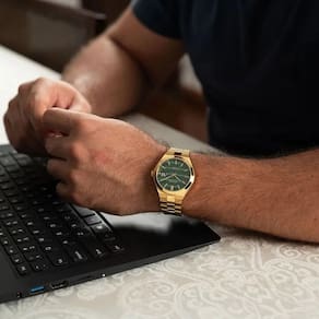 Relógio seculus automático 77313gpsvda4 Relógio automático com 21 joias e reserva de carga de 42h, construido todo em aço inoxidável, traz elegância e funcionalidade em um só acessório. Equipado com função calendário com luneta, oferece praticidade para o dia a dia. O fundo em vidro permite uma visualização do movimento interno, destacando a engenharia de precisão. O mostrador verde com efeito adiciona um toque contemporâneo ao design, complementado por uma caixa mediana de 40mm de diâmetro. A pulseira sólida com fecho borboleta garante conforto e um ajuste perfeito para todos os tamanhos de pulso. Este relógio é uma escolha indispensável para quem valoriza estilo e performance em um único acessório. Especificações técnicas Mecanismo: automático movimento miyota cal. 8215 - 21 joias reserva de carga de 42h Gênero: masculino Visor: verde com efeito Vidro: safira Funções: calendário com lupa Prova d'água: 50m Características: com caixa e pulseira em aço inoxidável, fecho borboleta e case back transparente. Diâmetro da caixa: 40 mm : 2 anos pela fabricante seculus