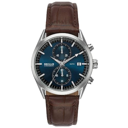 Relógio Seculus Cronógrafo 77307G0SVNC1 Vidro Abaulado Couro Prata