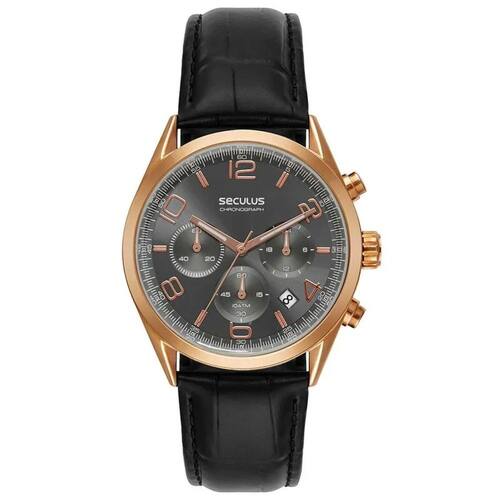 Relógio seculus cronógrafo 77308gpsvrc3 vidro abaulado couro rosé Este relógio cronógrafo rosé combina elegância e funcionalidade em um só acessório, com uma caixa robusta de aço inoxidável de 40mm de diâmetro e acabamento dourado. O vidro abaulado protege o mostrador em camadas e cria um efeito visual exclusivo. Também conta com ponteiros luminosos, proporcionando melhor visibilidade em ambientes com pouca luz. A pulseira de couro com tons avermelhados e textura croco, tem um design que foi projetado para se ajustar perfeitamente a todos os tamanhos de pulso, tornando este cronógrafo uma escolha ideal para quem busca unir sofisticação e alto desempenho. Especificações técnicas Mecanismo: quartzo Gênero: masculino Visor: preto Vidro: cristal mineral Funções: calendário e cronográfo Prova d'água: 100m Características: com caixa em aço e pulseira em couro preto Diâmetro da caixa: 40 mm : 2 anos pelo fabricante seculus Ean: 7909669175056