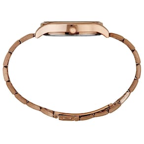 O mostrador rosé metálico harmoniza perfeitamente com os ponteiros e marcadores da mesma cor, criando uma estética uniforme e sofisticada. A pulseira em aço inoxidável rosé reforça a modernidade do modelo, tornando-o versátil para diferentes ocasiões, do dia a dia a eventos especiais.