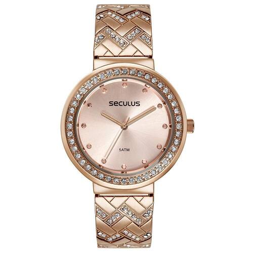 O Relógio Seculus 77277LPSVRB2 é um modelo que combina luxo e delicadeza em um design marcante. Sua caixa em aço rosé de 38 mm com aro cravejado em cristais proporciona elegância, enquanto o mostrador rosé em acabamento sunray confere sofisticação e estilo contemporâneo.