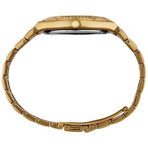 O mostrador dourado em acabamento sunray, com marcadores em cristais, transmite refinamento e modernidade. Já a pulseira em aço dourado, também com aplicações de cristais, completa o visual glamoroso, tornando este modelo perfeito para mulheres que desejam estilo marcante em todas as ocasiões. Com resistência à água de 5 ATM, combina beleza e funcionalidade para o uso diário.