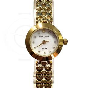 Marca: Seculus Modelo: 23696LPSVDB1 Tipo de relógio: Analógico Gênero: Feminino Cor da caixa: Dourado Cor da pulseira: Dourado Estilo: Casual Alarme: Não Cronômetro: Não Calendário: Não Luz: Não Resistência à água: Sim – 5 ATM = 50 metros Tipo de fecho: Fecho Joia Material da Caixa: Aço Inoxidável Material da Pulseira: Aço Inoxidável Características do vidro: Vidro mineral Tamanho da caixa: 20 mm Espessura da caixa: 7 mm Peso: 37 g Comprimento da pulseira: 20 cm Largura da pulseira: 19 mm Tampa do fundo: Pressão Alimentação: Bateria Garantia do Fabricante: 12 meses Fabricante: Seculus da Amazônia Ind e Com S/A