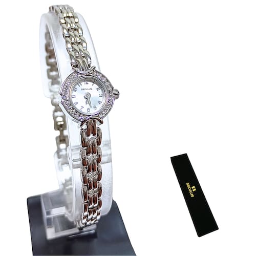 Marca: Seculus Modelo: 20091L0SVNA4 Tipo de relógio: Analógico Gênero: Feminino Cor da caixa: Prateado Cor da pulseira: Prateado Estilo: Clássico Alarme: Não Cronômetro: Não Calendário: Não Luz: Não Resistência à água: Sim – 3 ATM = 30 metros Tipo de fecho: Fecho tipo joia Material da caixa: Aço Material da pulseira: aço Características do vidro: Cristal Mineral Tamanho da caixa: 14 mm Espessura da caixa: 6 mm Comprimento da pulseira: 19 cm Largura da pulseira: 6 mm Tampa do fundo: Pressão Peso: 21 Gramas Alimentação: Bateria Garantia do Fabricante: 24 meses Fabricante: Seculus da Amazônia Ind e Com S/A