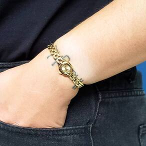 Marca: Seculus Modelo: 44068LPSVDA1 Tipo de relógio: Analógico Gênero: Feminino Cor da caixa: Dourado Cor da pulseira: Dourado Estilo: Casual Alarme: Não Cronômetro: Não Calendário: Não Luz: Não Resistência à água: Sim – 3 ATM = 30 metros Tipo de fecho: Fecho joia Material da caixa: Aço Material da pulseira: Aço Características do vidro: Cristal Mineral Tamanho da caixa (A x L): 13 x 12 mm Espessura da caixa: 6 mm Comprimento da pulseira: 19 cm Largura da pulseira: 6 mm Tampa do fundo: Pressão Peso: 24 Gramas Alimentação: Bateria Garantia do Fabricante: 12 meses Fabricante: Seculus da Amazônia Indústria e Com. S/A
