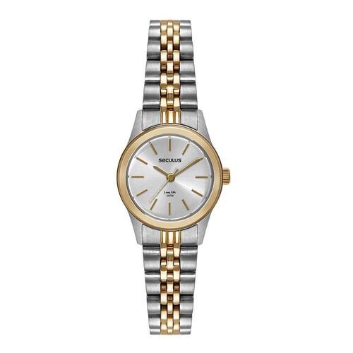 Relógio seculus feminino ref: 44193lpsvba2 clássico aço bicolor Descrição do produto: Vidro: cristal mineral Funções: analógico Resistencia à água: 50 m Características: com caixa de aço e pulseira de aço Diâmetro da caixa: 2,5 cm Fundo rosqueado Alimentação do maquinário: bateria Mostrador prateado Linha: seculus long life Prateado com dourado de 2 anos Marca: Não Informado Ean: 7909669164012