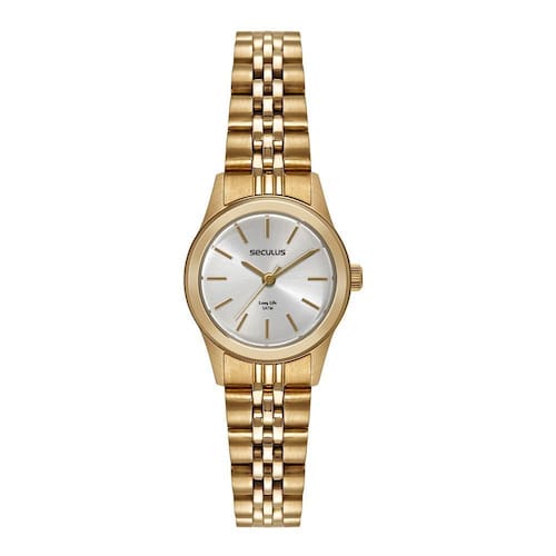 Relógio seculus feminino ref: 44193lpsvda1 clássico aço dourado Descrição do produto: Vidro: cristal mineral Funções: analógico Resistencia à água: 50 m Características: com caixa de aço e pulseira de aço Diâmetro da caixa: 2,5 cm Fundo rosqueado Alimentação do maquinário: bateria Mostrador prateado Linha: seculus long life de 2 anos Marca: Não Informado Ean: 7909669164005
