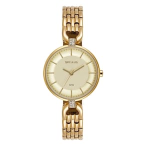 Relógio seculus feminino ref: 44286lpsvdb1 bracelete dourado Descrição do produto: Vidro: cristal mineral Funções: analógico Resistencia à água: 50 m Características: com caixa de metal e pulseira de metal estilo bracelete Diâmetro da caixa: 3,2 cm Fundo rosqueado Alimentação do maquinário: bateria Mostrador dourado Movimento japonês de 2 anos Marca: Não Informado Ean: 7909669203414