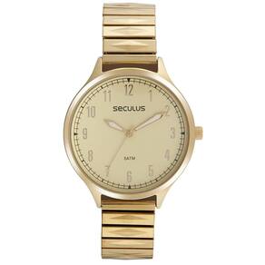 Relógio seculus feminino ref: 77167lpsvds1 mola dourado Descrição do produto: Vidro: cristal mineral Funções: analógico Resistencia à água: 50 m Características: com caixa de metal especial e pulseira de aço mola Diâmetro da caixa: 3,8 cm Fundo rosqueado Alimentação do maquinário: bateria Mostrador champanhe com todos os números de 2 anos