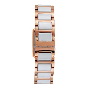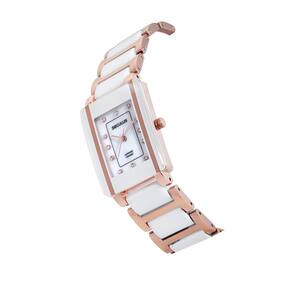 Características: com caixa de Metal e pulseira de Aço Inoxidável Rosé com Detalhes em Cerâmica Branca