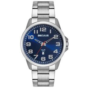 Relógio seculus long life 44216g0svna1 prata Relógio seculus masculino prata long life fundo azul irá te ajudar a compor um estilo esporte fino, deixando seu look mais autêntico, o tamanho grande da caixa do relógio é uma excelente opção para homens com pulsos largos. O estilo esporte fino exige certa formalidade descontraída que faz uma combinação perfeita à pulseira de aço na cor prata. Especificações técnicas Mecanismo: analógico Gênero: masculino Visor: azul Vidro: cristal mineral Funções: calendário Prova d'água: 50m Características: com caixa e pulseira em aço inoxidável Diâmetro da caixa: 46 mm : 2 anos pelo fabricante seculus Marca: Não Informado