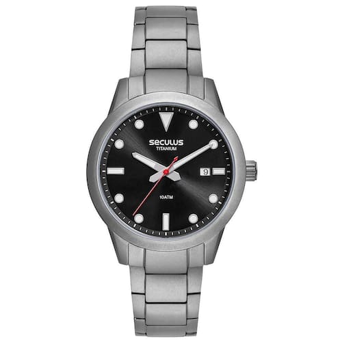 O Relógio Seculus 44249G0SVNT1 une leveza, resistência e estilo moderno em um design sofisticado. Produzido em titânio, material conhecido pela durabilidade e conforto, este modelo se destaca pela caixa de 38 mm com acabamento fosco em tom grafite, transmitindo discrição e imponência ao mesmo tempo.