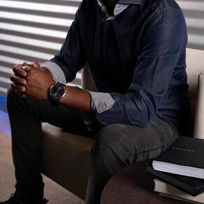 Mostrador: Preto com marcadores metálicos e detalhes em alto-relevo