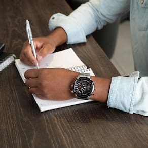 Além do estilo impactante, o modelo oferece cronômetro, alarme, calendário e resistência à água de 10 ATM, garantindo desempenho confiável em diversas situações.