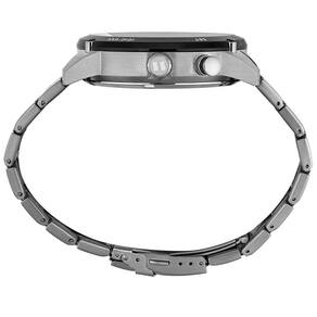 Seu mostrador preto detalhado com toques em vermelho traz indicadores analógicos de horas, minutos e segundos, além de visor digital que exibe funções extras. A pulseira em aço inox completa o visual resistente e sofisticado, ideal tanto para uso esportivo quanto para ocasiões casuais.