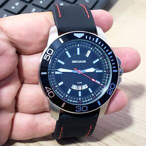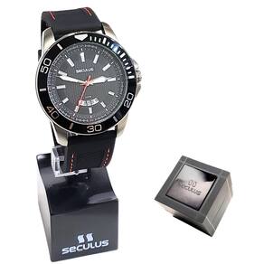 Marca: Seculus Modelo: 20791G0SVNU1 Tipo de relógio: Analógico Gênero: Masculino Cor da caixa: Prateado Cor da pulseira: Preto Estilo: Esportivo Alarme: Não Cronômetro: Não Calendário: Sim Luz: Não – ponteiros e marcadores fluorescentes Resistência à água: Sim – 5 ATM = 50 metros Tipo de fecho: Fivela simples Material da caixa: Aço Inoxidável Material da pulseira: Silicone Características do vidro: Vidro mineral Tamanho da caixa: 48 mm Espessura da caixa: 11 mm Comprimento da pulseira: 25 cm Largura da pulseira: 24 mm na junção com a caixa Tampa do fundo: Rosqueado Peso: 74 Gramas Alimentação: Bateria Garantia do Fabricante: 24 meses Fabricante: Seculus da Amazônia Ind e Com S/A