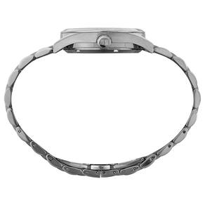 A pulseira em aço inoxidável possui construção sólida e fecho borboleta com botões laterais, garantindo segurança e conforto no uso. O fundo da caixa em vidro transparente permite visualizar o funcionamento do mecanismo interno, um detalhe que agrada apreciadores da relojoaria mecânica.