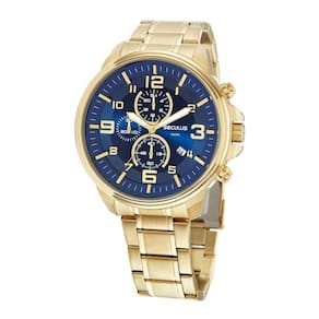 Relógio seculus masculino ref: 44107gpsvda3 cronógrafo dourado Descrição do produto: Vidro: cristal mineral Funções: cronógrafo, calendário, analógico Resistencia à água: 100 m Características: com caixa de aço inoxidável e pulseira de aço inoxidável Diâmetro da caixa: 4,9 cm Fundo de rosca Alimentação do maquinário: bateria Mostrador azul com números Garantia de 2 anos