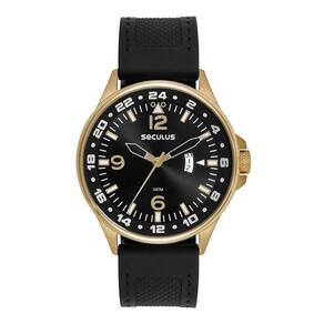 Relógio seculus masculino ref: 44279gpsvdu2 esportivo dourado Descrição do produto: Vidro: cristal mineral Funções: analógico, calendário Resistencia à água: 50 m Características: com caixa de aço inoxidável e pulseira de silicone preta Diâmetro da caixa: 4,8 cm Fundo de rosca Linha long life Alimentação do maquinário: bateria Mostrador grafite com números de 2 anos
