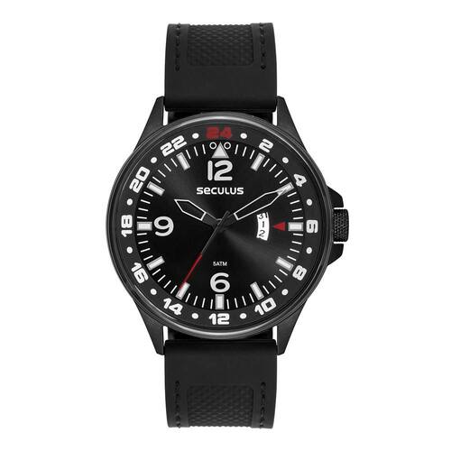 Características: com caixa de Aço inoxidável e pulseira de Silicone Preta